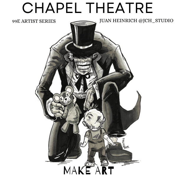 New merch alert! In honor of our old Chapel Theatre magazine called 99E, we are doing a merch series highlighting some of the cover artists from previous magazines. We have stickers which you can purchase through Chapel Theatre directly using the link below, and shirts/sweatshirts through a Rebel Cricket storefront using the shirt link.